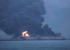 Tankkuģis, kas veda naftu no Irānas uz Dienvidkoreju, pēc sadursmes ar preču kuģi Ķīnas austrumu piekrastē aizdegās.