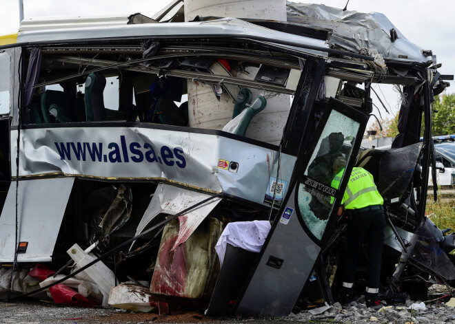 Traģēdija Spānijā: autobusam ietriecoties stabā, bojā gājuši pieci cilvēki un 20 ievainoti