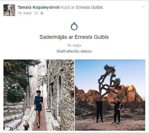 Modele no Maskavas Tamara Kopala jeb Tamara Kopalejšvili, kura norādījusi, ka ir attiecībās ar latviešu tenisistu Ernestu Gulbi.