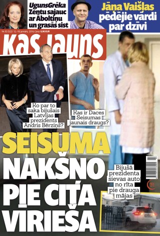 Plašāk par eksprezidenta Andra Bērziņa sievas Daces Seisumas attiecībām ar Aigaru Lāci, kā arī ekskluzīvas fotogrāfijas, kurās redzams, kā Dace Seisuma agrā rītā dodas prom no kolēģa mājas, skatiet žurnāla “Kas Jauns” šīs nedēļas numurā!