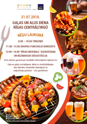 Rīgas Centrāltirgus sadarbībā ar LIVE Rīga aicina tirgus apmeklētājus, Rīgas viesus un iedzīvotājus sestdien, 21.jūlijā, visas dienas garumā apmeklēt pirmo Centrāltirgus Gaļas un alus dienu, kurā tirgus apmeklētājus iepriecinās gan dzīvā mūzika, gan vietējo ražotāju sarūpētie gardumi!
