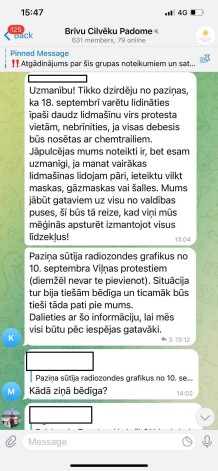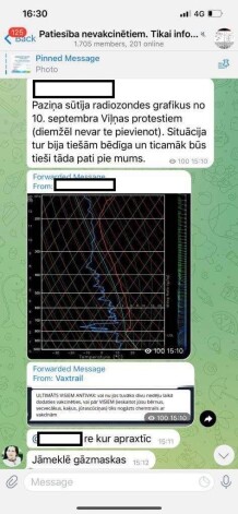 Kā liecība “Kariņa kliķes” gatavībai uz visu esot “radiozondes grafiki no 10. septembra protestiem Viļņā”. Tur situācija esot bijusi tiešām bēdīga.