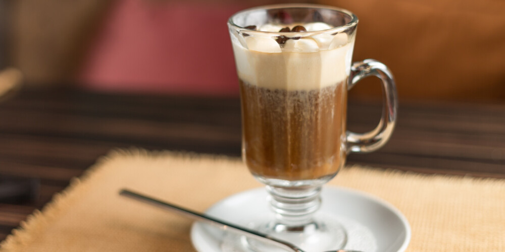 Liķierus salej četrās lielās tasēs. Kafiju izfiltrē un arī lej krūzēs. Izrotā ar putukrējumu.