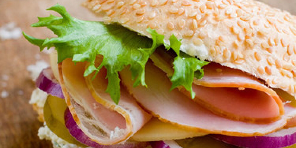 Sīpolu smalki sakapāt, atstājot pāris ripiņas dekorēšanai. Biezpienu sajaukt kopā ar krējumu, smalki sakapātiem zaļumiem,sīpoliem, pievienot sāli. Hamburgeru maizīti sagriezt uz pusēm. Uz apakšējās pusītes uzliek pabiezu biezpiena kārtu, pa virsu sakārto gurķu šķēlītes, sīpolu ripiņas, siera šķēli, šķiņķa šķēlītes, salātlapas
