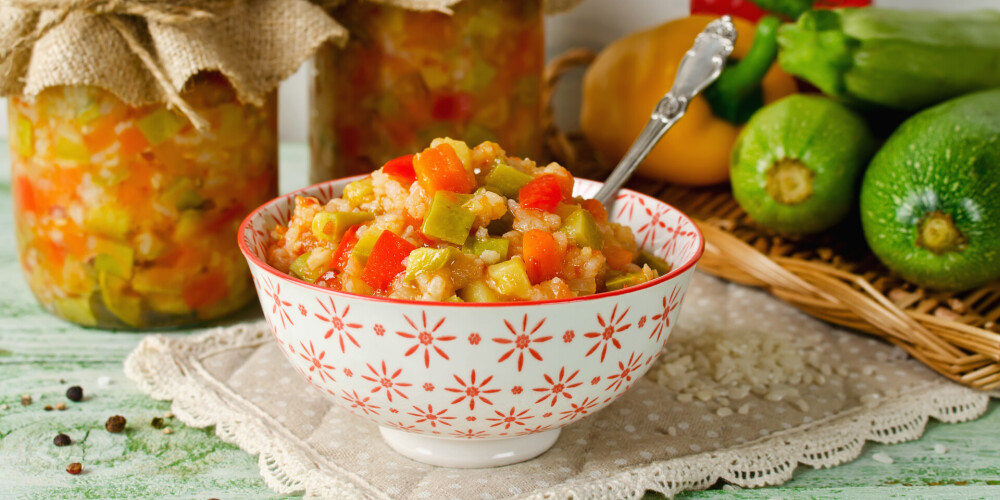Kabačus sagriez mazos gabaliņos, sīpolus sakapā, burkānus sarīvē rupjās skaidiņās. Tomātus arī sagriez gabaliņos.