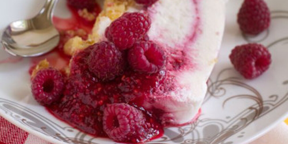 Sajaukt biezpienu, citrona sulu un cukuru. Saldo krējumu uzputot un uzmanīgi sajaukt ar biezpiena masu. Avenes blenderī sasmalcināt, pievienojot 3 ēd.k citrona sulas un 3 ēd.k cukura.