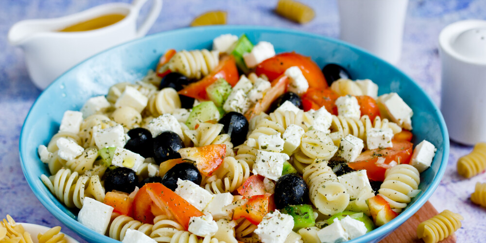 Vienkārši pagatavojami pastas salāti – visvairāk laika prasīs redīsu un gurķa sašķēlēšana… Jautāsi – kāpēc vajadzīgs bekons? Tavam vīrietim taču gribas ko sātīgāku!