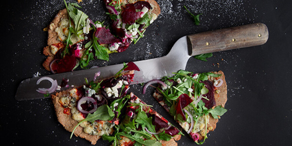 Darba virsmu pārkaisa ar miltiem. Mīklu sadala divās daļās un izrullē, veidojot divas picas pamatnes. Bietes sagriež plānās šķēlēs, sieru sadrupina, sīpolu sagriež plānos gredzenos.