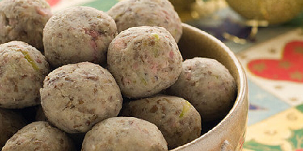 Kartupeļus un zirņus samalt ar gaļas maļamo mašīnu, pievienot apceptus sīpolus un šķiņķi. Pēc garšas pievienot sāli. Visu samaisīt.