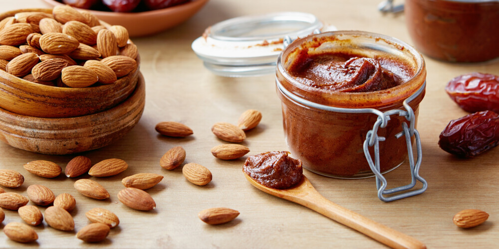 Kamēr rieksti vēl silti, pievieno tiem dateles un visu blendē 2-3 minūtes. Pakāpeniski pievieno sīrupu un turpini smalcināt līdz masa kļūst krēmīga.