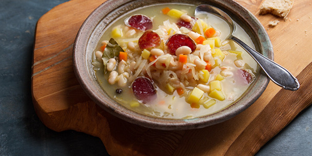 Katlā ar biezu apakšu uzkarsē eļļu un apcep tajā sīpolus un burkānus. Pievieno kāpostus, kartupeļus, pupiņas, lauru lapas, piparus un kadiķogas, pārlej ar buljonu, pievieno vēl apm. 1l ūdens un vāra līdz pupiņas un dārzeņi ir mīksti. Desu sagriež šķēlītēs un pievieno zupai pašās beigās. Pēc garšas pievieno sāli un svaigi maltus piparus.