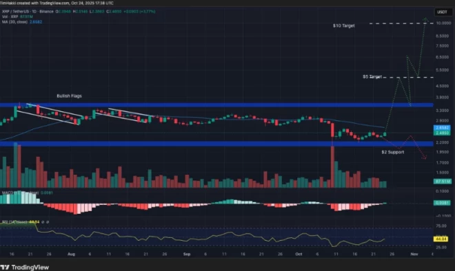 Virkne spot XRP ETF apstiprinājumu, uzlabota regulatīvā skaidrība vai jauna partnerība varētu palīdzēt XRP pārkāpt 5 dolāru robežu, savukārt 10 dolāri būtu maz ticams, bet iespējams “bull” scenārijs.