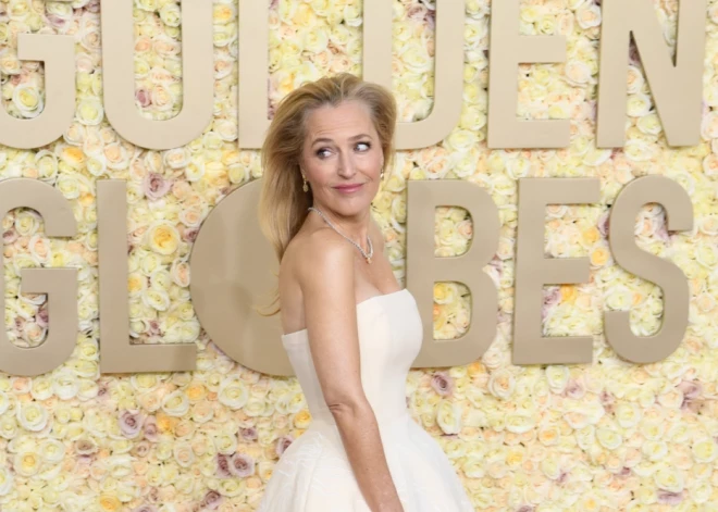 Slavenā amerikāņu aktrise Džiliana Andersone uz 2024. gada "Zelta globusa" balvas sarkanā paklāja pārsteidza ar savu drosmīgo stilu.