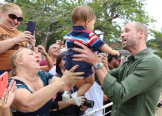 Princis uzrunāja apmēram 350 cilvēku lielu pūli, smaidīja selfijiem un paņēma uz rokām desmit mēnešus veco zēnu Hoakimu Monteiru, kurš bija uz tikšanos ieradies kopā ar savu vecmāmiņu Kristīnu. Viljams jautāja omītei: “Kā viņu sauc?” un “Cik viņam gadu?” – turpinot draudzīgu sarunu. Viņš piebilda: “Lai Dievs viņu svētī,” un atdeva bērnu vecmāmiņai.
