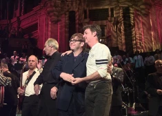 Pols Makartnijs un Miks Džegers sniedz atbalstu Eltonam Džonam laikā, kad viņš zaudē redzi