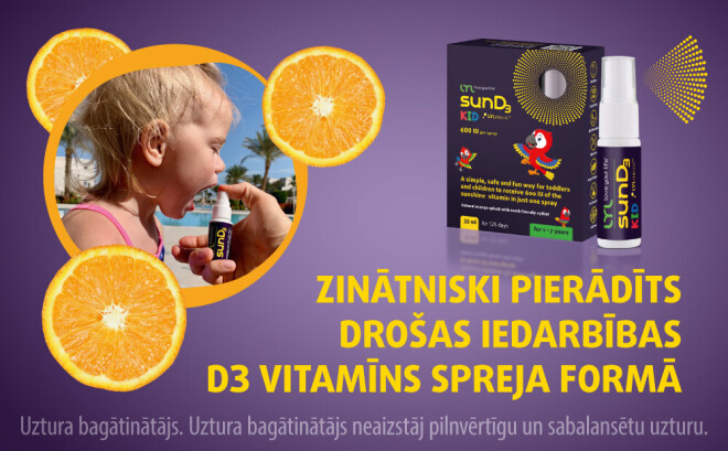Mums pieaugušajiem zināmais un efektīvais LYLsunD3 nu jau kādu laiku radīts arī mazākajiem ģimenes locekļiem, bērniem no 1 līdz 7 gadu vecumam. Tikai viens LYLsunD3 KID izsmidzināmā spreja pūtiens zem mēles vai vaiga iekšpusē nodrošina mazo ķiparu ar dabisku, garšīgu, ikdienā ērti lietojamu dienas optimālo D vitamīna devu – 600 SV.