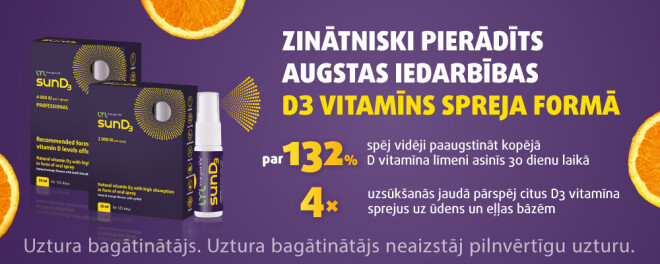 Pagājušajā gadā Latvijā veiktā neatkarīgā pētījumā tika pierādīts, ka vietējā farmācijas zīmola LYL love your life® D3 vitamīns spreja formā LYLsunD3 spēj paaugstināt D vitamīna līmeni asinīs vidēji par 132% un uzsūkšanās jaudā apmēram 4 reizes pārspēj tirgū esošos D vitamīna sprejus uz eļļas un ūdens bāzēm.