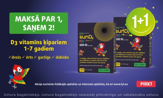 Septembrī un oktobrī lielākajos aptieku tīklos akcija – pērc vienu LYLsunD3 KID un saņem otru dāvanā!