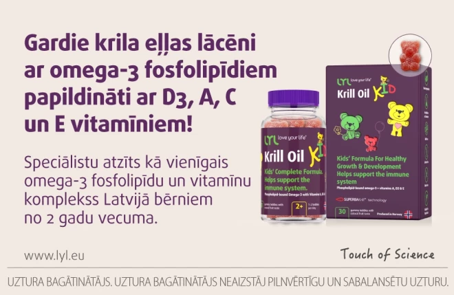 - Nodrošināt bērnam sabalansētu uzturu, kas bagāts ar barības vielām, tostarp D3 vitamīnu un omega-3 taukskābēm. Tās atrodamas treknajās zivīs, linsēklās, valriekstos un, protams, uztura bagātinātājos, piemēram, krila eļļā. Bērniem patiks Latvijas farmācijas zīmola LYL love your life® piedāvātie LYLsunD3 KID un LYL Krill Oil KID lācīši.