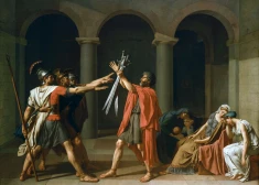 Žaka Luija Davida (1748-1825) glezna “Horāciju zvērests”, kas leģitimizēja patriotisko romiešu sveicienu.