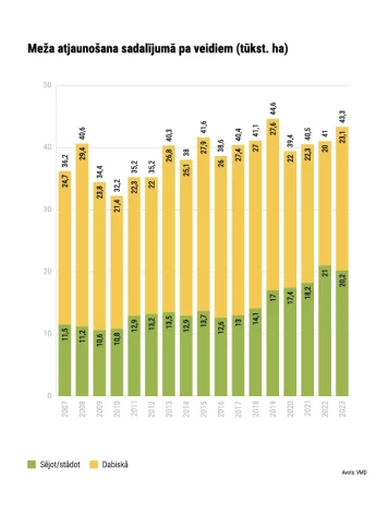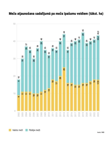 Pēc atbalsta likmju pārskatīšanas 2025. gadā meža īpašnieku interese būtiski pieauga. Ja 2024. gadā tika iesniegti 2664 pieteikumi, tad nākamajā gadā – jau 3425.