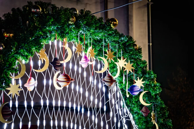 Šogad Daugavpils Ziemassvētki paceļas pāri ierastajam – pilsēta aicina pabūt Mazā prinča “Sapņu galaktikā”, kur gaisma satiekas ar pārdomām, bet svētku prieks ar klusākiem stāstiem par sapņiem un attiecībām. Iedvesmojoties no Antuāna de Sent-Ekziperī grāmatas “Mazais princis”, šā gada svētku koncepts uzrunā dziļi, atgādinot par to, cik trauslas un vienlaikus spēcīgas ir saites, kas mūs vieno. “Tu esi atbildīgs par to, ko esi pieradinājis” kļūst par galveno svētku atslēgas frāzi, aicinot rūpēties gan par līdzcilvēkiem, gan pašu sapņiem. Pilsētas ielās var sastapt leģendārās grāmatas varoņus un iepazīties ar tās spilgtākajiem domu graudiem. Svētku rotājumos valda kosmosa tēma, kas pamanāma gan sīkās eglīšu rotās, gan iespaidīgajās planētu bumbās, kuras izgaismojas pilsētas ielās. Vienības laukuma centrā mirdz pilsētas galvenā svētku egle – kā galaktikas sirds un simboliska Visuma ass. Tās zaros iedegtas bezgalīgas planētas un zvaigžņotas galaktikas, atgādinot par sapņiem, kas reizēm šķiet tāli kā kosmoss, bet arvien ir sasniedzami. Virs egles plešas gaismu plīvurs, kas ieaijā Ziemassvētku maģiskajā telpā un rada sajūtu, it kā sapņi paceltos spārnos tepat virs galvas. Ne velti svinīgajā egles iedegšanā pulcējās ap 7000 cilvēku, kas bija apliecinājums tam, ka svētku gaisma rodas tur, kur satiekas cilvēki.