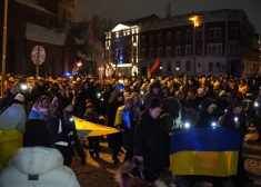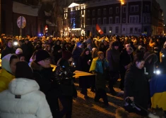 Pieminot kara Ukrainā ceturto gadadienu, daži simti cilvēku Vecrīgā pulcējās biedrības "Tavi draugi" rīkotajā atbalsta gājienā "Gaismas ceļš Ukrainai.