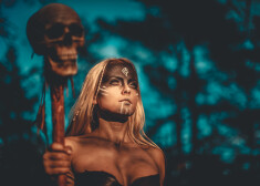 Aktrise Maija Arvena Ozoliņa raganiskā fotosesijā. Tērps: Vita Radziņa Grims: Elza Bukuma