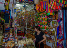 Runājoties piebraucam pie tirgus. Tas ir domāts tūristiem. Cik nu tūristu te vispār mēdz būt... Lai gan pilsēta ir slavena, patiesībā tā nepiedāvā neko ievērības cienīgu, un tūristi šeit ierodas lielākoties tikai tranzītā. Gluži kā es. Lai arī tirgus ir paliels, es laikam te esmu vienīgais tūrists. Ir vēl kādi vietējie, kas staigā un kaut ko pēta, taču preču sortiments pārsvarā ir tūristiem domāts. Ādas izstrādājumi, glezniņas, grozi, magnēti un citi suvenīri, ko vietējiem noteikti nevajag. Pārdevējas jaukas un neuzbāzīgas. Ja apstājies pie viņu stenda, labprāt aprunājās, bet, ja vienkārši ej garām, smaida. Kādu stundiņu pastaigājam pa tirgu. Nopērku pāris nieciņus. Pārdevējas piedāvā paštaisītu alkoholu. Ir labs. No oriģinālas pudeles. Cena ir ļoti pieņemama, bet man vēl tāls ceļš priekšā, tāpēc labprāt degustēju, taču pirkt negribas. Uz ekskursijas beigām jau esmu gluži labā omā un dzenu bazaru ar pārdevējām. Lurdesa ņirdz.