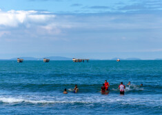Kamēr izbaudu ūdens priekus, netālu no manis parādās zvejnieku laiva. Klātienē varu redzēt, kā vīri tiek pie zivīm. Un varu droši apgalvot, ka process nav vienkāršs. Pati laiva ir no koka un pārsvarā tiek izmantota, lai tajā samestu lomu. Paši zvejnieki, kopskaitā seši, ar lielu tīklu brien līdz kaklam jūrā un tad virzās uz krastu, veidojot apli, lai zivīm nebūtu kur sprukt. Jūrā ir pietiekami lieli viļņi, un nekāda vieglā pastaiga tā nav. Mētā gan pašus večus, gan viņu laivu. Un arī neizskatās, ka viena gājiena laikā būtu noķerts daudz zivju. Var redzēt, ka darbs ir fiziski grūts un prasa labas komandas iemaņas.