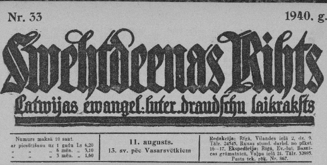 Padomju cenzori kā pēdējos brīvā vārda bastionus noārdīja kristīgos izdevumus, jo viņi laikam domāja, ka “tukši sprediķi” jau nekādu postu nevar nodarīt, kā laicīgās avīzes un žurnāli. Tomēr ieskatīties 1940. gada augusta baznīcas izdevumos ir visnotaļ interesanti ne tikai Bībeles un kristietības pētniekiem. Tieši šie izdevumi visdrīzāk varētu būt labs pretarguments tām “Maskavas dzeguzēm”, kuras kladzina, ka teju vai visa latvju tauta ar sajūsmu sagaidīja padomju tankus. Protams, bija arī tādi ļaudis, bet bija arī, kas iebrucējus “apsaukāja” nesmukiem vārdiem, un tādu nebija mazums.