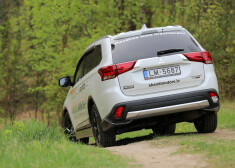 Galu galā Miciņi ir īstā vieta, lai noskaidrotu, kā tad Outlander jūtas ārpus komforta zonas – pilsētas un asfalta. Tas, ka grants ceļš automobilim nekādas problēmas nesagādā, nebija pārsteigums. Gan bedres un ceļa nelīdzenumus auto gana labi amortizē, gan ceļa līkumos stabili turas. Interesantāk kļūst, iebraucot Miciņu mežā, kur, pēc visa spriežot, pa izdangāto ceļu pārvietojas galvenokārt traktori, meža tehnika un īsti zemnieku džipi. Taču arī Outlander šādos apstākļos ir savi argumenti – pārslēdzamies uz pilnpiedziņas režīmu un esam gatavi šķērsot dubļu zonu. Nekādu problēmu – peļķēm un dubļu sanesumiem izslidināmies cauri viegli un nepiespiesti. Labi, nebija jau tās nekādas briesmīgās slīkšņas un akači, taču tādos prātīgs cilvēks bez īpaši sagatavota automobiļa vispār nelien. Īsi sakot, lauku apstākļiem Outlander ir pilnībā piemērots, un zemnieku dižģimenes droši var apsvērt šāda auto iegādi.