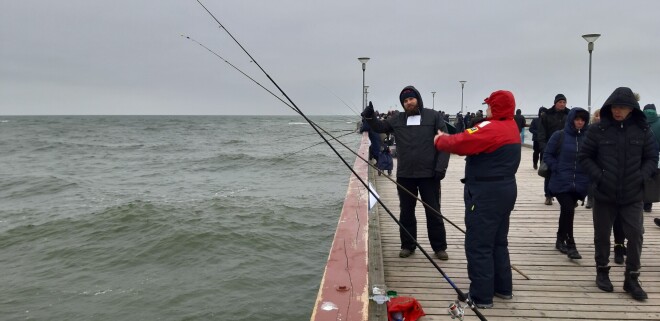 Ap pulksten vienpadsmitiem uz Palangas jūras tilta ir sapulcējies milzīgs bars līdzjutēju, kuri katras butes izvilkšanu pavada ar ovācijām un metas fotografēt veiksmīgo makšķernieku ar lomu. Jons stāsta, ka stinšu makšķerēšanai šoreiz nav ne pateicīgākais laiks, ne vieta, tomēr esot lieliska svētku noskaņa un laba laika pavadīšana svaigā gaisā. Pats makšķernieks labprāt dalās stinšu ķeršanas pieredzē un lieliski zina par stinšu ķeršanu Liepājā un Ventspilī, kur bijis makšķerēt stintes laikos, kad Liepājas tirdzniecības kanālu un Ventu klājis ledus. Skatos uz makšķernieka copes rīkiem un saku, ka makšķeres aprīkojums vairāk piemērots bušu, nevis stinšu makšķerēšanai. Jons pasmaida un atzīst, ka šādos viļņos pat ar vissmalkāko rīku nekāda prātīga stinšu cope neiznāks. Taču pirms pāris nedēļām viņam Klaipēdas ostā esot izdevies saķert pusspaini stinšu, kopējā svarā ap pieciem kilogramiem.