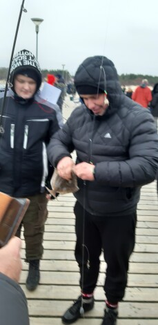 Kad makšķerēšanas censoņi pusdienas laikā beiguši copi, tiek svērti lomi un skaitīti punkti. Nekā grandioza gan te nav – lomi diezgan niecīgi, un stinšu tajos tikpat kā nav. Bet vakara kulminācija ir ziemas peldes mīļotāju iznāciens aukstajā Baltijas jūras ūdenī. Pludmalē sakurts ugunskurs, un kāds simts “roņu” metas jūras bangās, bet jau pēc neilga brīža slapji nāk ārā no jūras smaidīgi un apmierināti par savu varēšanu.