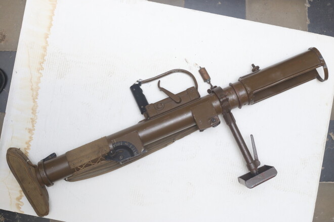 Latvijā ļoti eksotisks šaujamais – Otrā pasaules kara britu prettanku ierocis PIAT. Briti to lendlīzes programmā sūtīja arī uz Padomju Savienību. Tiesa, Latvijā gan tas nonāca caur Zviedriju – no turienes armijas muzeja, kura kolekcijā tādi bija vairākos eksemplāros. Ierocis interesants ar to, ka tā darbības princips balstījās uz ļoti stingras atsperes uzvilkšanu un strauju atlaišanu, tā raidot šāviņu pretinieka virzienā. Īpaši tālu gan tā aizšaut nevarēja – uz daudzmaz precīzu trāpījumu varēja cerēt distancē līdz 100 metriem.