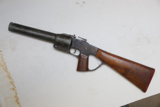 Amerikāņu 40 mm granātmetējs – to izmantoja gan šķembu granātu, gan asaru gāzes granātu un dūmu sveču izšaušanai. Latvijā ļoti rets eksponāts, jo tādus amerikāņi izmantoja Vjetnamas kara laikā.