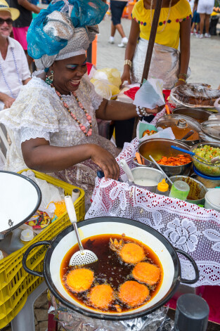 Apraksts. Brazīlieši ir apsteiguši ēģiptiešus – viņi gatavo falafelu burgerus! Vienkārši pārgriež maizes bulku un sāk kraut iekšā visu – garneles, Indijas riekstus – kešjū, salātus, pupas un tomātus. Pēc tam visu pārlej ar piparu mērci. Akaržu uz ielām tirgo vietējās sievietes, sapucējušās gluži kā uz sambas karnevālu.