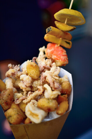 Apraksts. Kādam itālim galvā reiz iešāvās ģeniāla doma – franču kartupeļu vietā fritēt jūras veltes! Te izmanto nelielas garneles, sīkkalmārus un nelielas sardīņu dzimtas zivteles, kuras svaigas tiek iepirktas no vietējiem zvejniekiem. Produktu tirgo parastā papīra iepakojumā – nu gluži kā french fries, plus pārlej ar citrona sulu. Baudīšanai lieto spicus salmiņus, lai nenosmulētos ar eļļu.