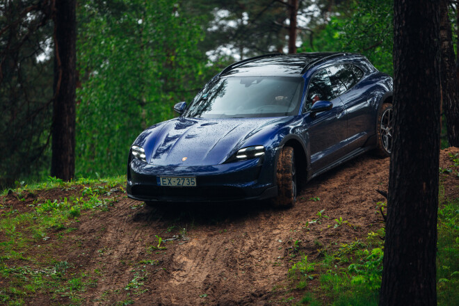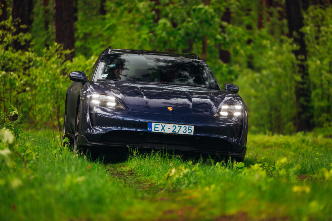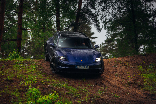 Toties otrā daļa gan bija pārsteigumu pilna: izrādās, Cross Turismo tiešām spēj pārvarēt tādus kalnus un lejas, kādi, kā varētu padomāt, ir pa spēkam tikai pamatīgam krosoveram ar izteikti augstu klīrensu! Skaidrs, ka pērties augšā ikvienā smilšu kaudzē ar Taycan nebūtu prāta darbs, jo tas tomēr nav Land Cruiser, taču ar sēņošanas tripu Pierīgas mežos Porsche elektromobilis mierīgi tiks galā. Tiesa, lēta šī sēņošana nebūs, jo bez 100 000 eiro Taycan Cross Turismo neiznāks iegādāties...