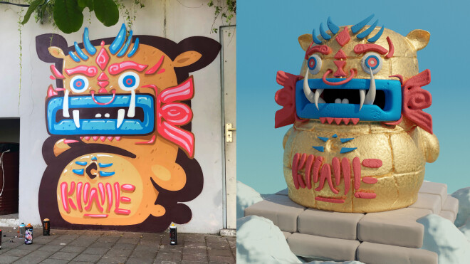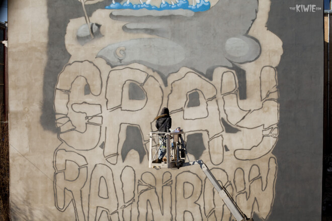 Ielu māksla uzņem apgriezienus gan Latvijā, gan pasaulē. Viens no mūsu redzamākajiem pārstāvjiem šajā jomā ir Kiwie – mākslinieks ar veca vīra maskā slēptu identitāti, kuru kā paraksts apliecina dažādām lokācijām un konkrētajai idejai pielāgoti monstriņu zīmējumi uz māju sienām, žogiem, elektrības kastēm un citiem pilsētvides objektiem. Tagad Kiwie ar savu monstriņu burtiskā veidā saposies ceļojumam apkārt pasaulei.