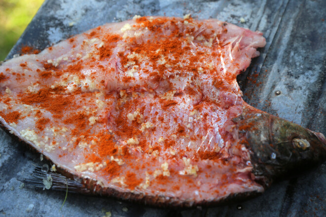 Pirms ķeramies pie marinēšanas, ātri izskriešu pa visiem tīrīšanas posmiem. Pirmkārt, zivs pirms ķidāšanas rūpīgi jānoslauka ar sausu audekla lupatiņu vai papīra virtuves dvieli. Šis pats process jāatkārto īsi pirms marinēšanas, kad zivs jau iztīrīta. Neieteiktu to darīt ar ūdeni, izņemot gadījumos, kad tas pasmelts no ūdenstilpes, kurā zivs ir ķerta. Otrkārt, ar filējamo nazi gar mugurspuru atveram mūsu upuri kā atmiņu albumu, izņemam iekšas un, ja iespējams, ar šķērēm abpusēji izgriežam žaunas. Galvas atstājam – ir daži epikūrieši, kuri gluži kā kaķi mielošanos ar zivi iesāk tieši no galvas. Beidzot esam piezagušies pie pašas marinādes. Divas zivis – divas marinādes – tā es nolēmu, lai būtu interesantāk! Apstiprinot aksiomu, ka abas mūsu pilsones ir no karpu dzimtas un gastronomiski apveltītas ar nelielu dūņu piegaršu (ne tik izteiktu kā karūsai, rudulim un līnim, protams), lēmums ir taisīt jaudīgas marinādes, kuras varētu to nomākt.