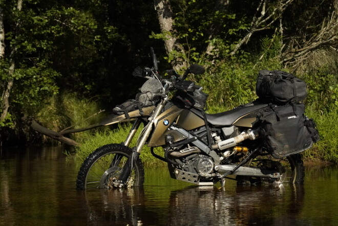 Nedaudz vairāk – mēģinājām ap divsimt noturēt. Uzstādījums jau bija netrakot un nekur nesteigties – normāli pagulēt un meklēt visādus interesantus punktus. Taču nevis pa pašu maršrutu, bet apkārt: ja tev gribas iebraukt kādā krodziņā vai sagribas aliņu; vai varbūt tur blakus ir kāds dižakmens vai kāda cita interesanta vieta.