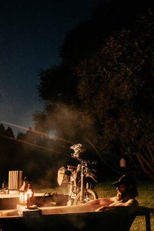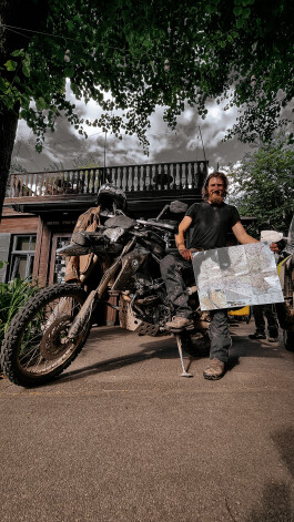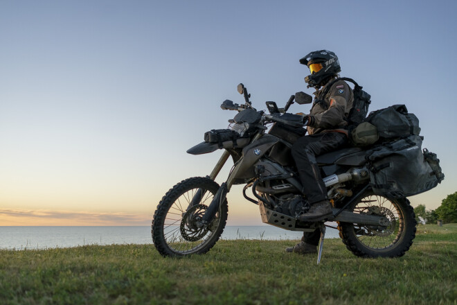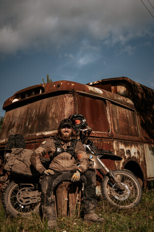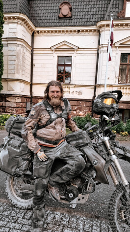 Rihards Grunte jau pēc ārienes vien atgādina ASV kulta seriāla "Anarhijas dēli" personāžu – ādas bruņas, vēju ārdēta bārda un, protams, jaudīgs divriteņu rumaks. Izrādās, ka "Outduro" domubiedru kompānijas izveidotājs laicīgajā dzīvē ir "Printful" mārketinga speciālists, zemessargs un liels gastronomisku pārsteigumu šovmenis: viņa pagaidām lielākajā piedzīvojuma projektā "Apbrauc Latviju" kopā ar Rihardu ceļoja ne tikai grils, bet arī kūpinātava!