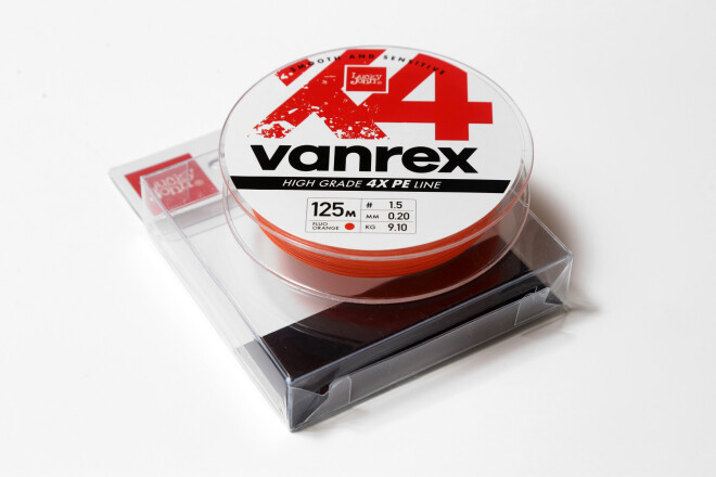 Aukla, pīta – Vanlex, 125 metri, 0,2 mm, oranža, tests – 9,5 kg. Cena – 7,95 EUR.