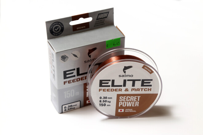 Aukla, monofila un universāla – Salmo Elite Feeder & Match, 150 metri, 0,3 mm, tests – 8,5 kg. Cena – 4,65 EUR.