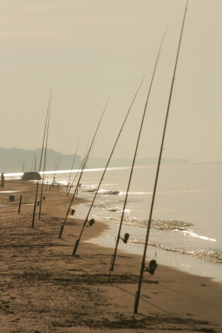 Tagad par kātiem. Vislabāk jūras copē ir izmantot gruntenes jeb modernajā copes leksikā sauktos fīderus. Tiem jābūt ar jaudīgu akcijas testu – vislabāk no 150 līdz 200 gramiem. Ieteiktu lietot divdaļīgos, bet nekādā gadījumā ne teleskopiskos kātus. Var jau, protams, izmantot arī karpu makšķeres, bet tas iedragās jūsu izmaksas teju divkārši. Optimālais garums 360–420 centimetri. Ja jūsu garāžā ir profesionāls jūras kāts ar rullīšiem gredzenu vietā, varat izmantot arī to. Pluss – jūs to nekad nesalauzīsiet; mīnuss – tas būs ierobežots mešanas distancē, jo jūras kāts ir teju trīsreiz īsāks par fīderu.