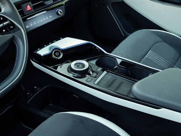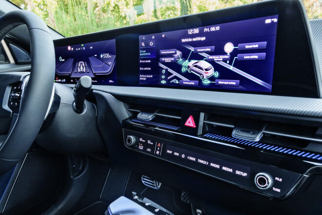Luksusa sajūta saglabājas arī auto iekšienē. Ārkārtīgi ērti sēdekļi, mūsdienīgs instrumentu panelis un mediju vadības centrs ar lieliem displejiem, bet klimatkontrole – paldies dizaineriem! – pa vecam ir atstāta atsevišķi viduskonsolē, atbrīvojot no nepieciešamības brauciena laikā bakstīt ekrānu, ja radusies vēlme pēc vēsuma vai siltuma. Kā jau elektroauto pienākas, akcents likts uz videi draudzīgiem materiāliem: sēdekļi ir no vegānu ādas (lai ko tas arī nozīmētu), bet paklājiņi izgatavoti no pārstrādātām plastmasas pudelēm. Reizēm šādi ekomateriāli rada lētuma iespaidu, taču KIA kaut kā izdevies no tā izvairīties. Protams, tas ir gaumes jautājums, taču personīgi man EV6 likās gandrīz stilīgāks par "Hyundai IONIQ5", kas būvēts uz tās pašas platformas un tehniskajā ziņā ir teju vai dvīņubrālis.