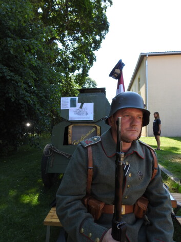 Jā, melnajās uniformās ar kepku galvā, piegādājot ierakumos esošajiem patronas un lādiņus. Tā patiesībā ir liela problēma, jo jaunajiem čaļiem par šo lietu interese ir diezgan maza, pārsvarā rekonstruktoru vidū ir pusmūža vīri. Igauņiem šajā ziņā situācija ir labāka, jo tur parādās arī pa kādam divdesmitgadīgam. Kad prasīju, kā viņi to panākuši, atklājās, ka tie ir jau pieredzējušo rekonstruktoru dēli.