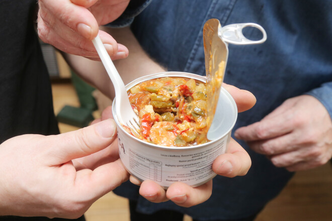 “Par to, ka varējām pagaršot astoņu valstu armijas pārtikas devas, jāpateicas Latvijas Nacionālo bruņoto spēku pārstāvjiem. Viņi ne tikai izsniedza mums izglītojošiem mērķiem mūsu armijas sauso pusdienu paciņu, bet arī noorganizēja pa pārtikas devai no to sabiedroto valstu kontingentiem, kas atrodas Latvijā,” stāsta Sandris Metuzāls.