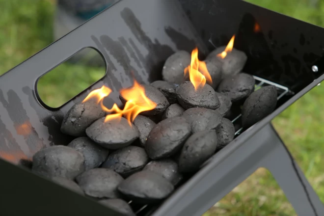 Padārgas un interesantas ogles, kuru aizdedzināšanas process ir visai interesants un neveiklākam cilvēkam var izvērsties traumatisks. Katra ogle ir cilindra formas, un tai vidū ir caurums. Instrukcijā teikts, ka vispirms vajag aizdegt grilā ievietotu aizdedzināšanas kubiņu, bet ogli pēc tam uzlikt pa virsu tā, lai liesma trāpītu caurumā. Ja ir metāla knaibles vai azbesta cimdi, tad to nav grūti izdarīt, taču ar kailām rokām šis pasākums var izvērsties par sāpīgu piedzīvojumu. Taču, ja ogles ir izdevies uztupināt degošajiem kubiņiem, tālāk viss notiek bez aizķeršanās – tiešām ātri aizdegas un nodrošina karstumu ilgam laikam.